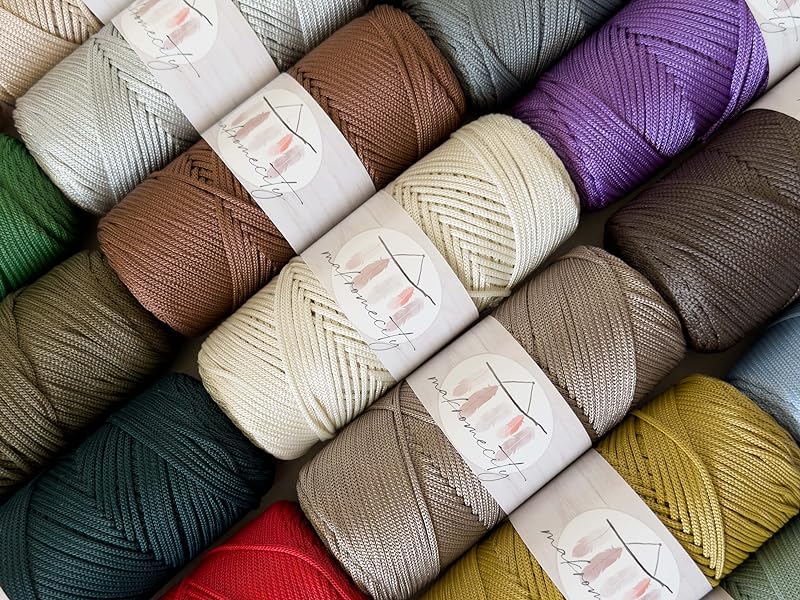 🧶 POLYESTER MAKROME İPİ - %100 Polipropilenden üretilmiştir. İpin 2 mm dir. Polyester makrome ipin her bir çilesi 100 gr'dır. Onun bir yumak'ı ortalama 115 metredir. Mükemmel makrome projeleri yapacak kadar tasarlandı.
